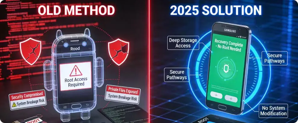 No-root solutions avoid the risks associated with rooting: warranty loss, data exposure, and OS instability. This makes them the safer default for anyone trying to retrieve lost files in 2025.