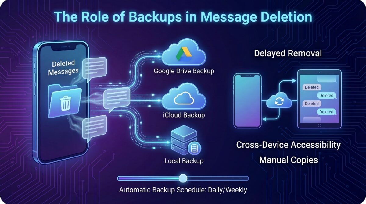 Cloud-synced backups also manage cross-device accessibility, ensuring that deleted messages on one device may remain visible on another linked device until the cloud fully processes the deletion.