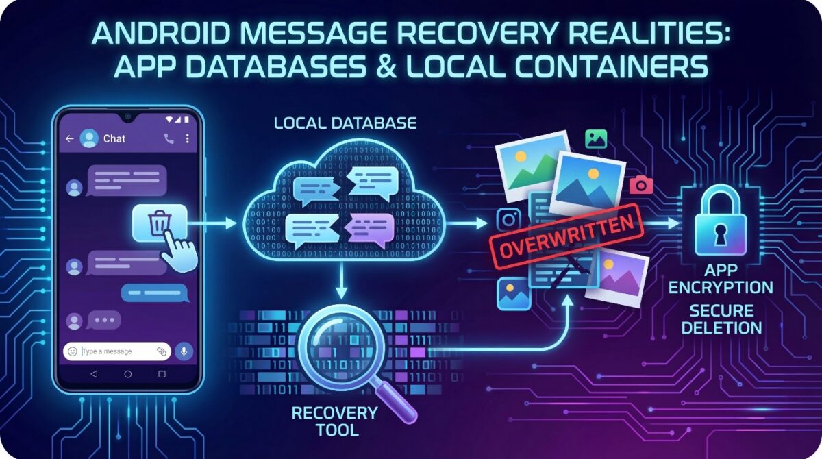Android messaging apps, including SMS and third-party chat applications, rely on local databases to store message content. When a deletion command is triggered, the database entry is removed or flagged, but the underlying storage blocks are not immediately cleared.