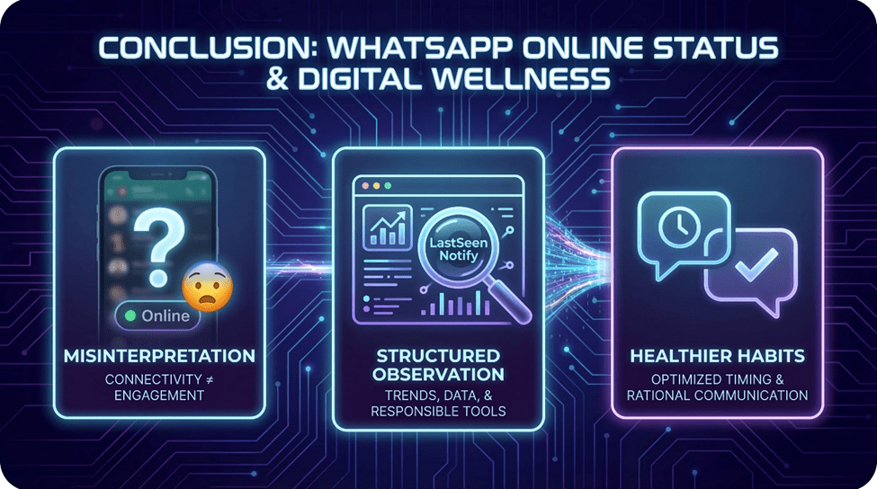 Responsible tracking avoids forming assumptions about intent or emotional state. Online visibility signals are purely technical, and treating them as personal judgments can create unnecessary stress. Structured monitoring supports factual interpretation and reduces emotional bias.