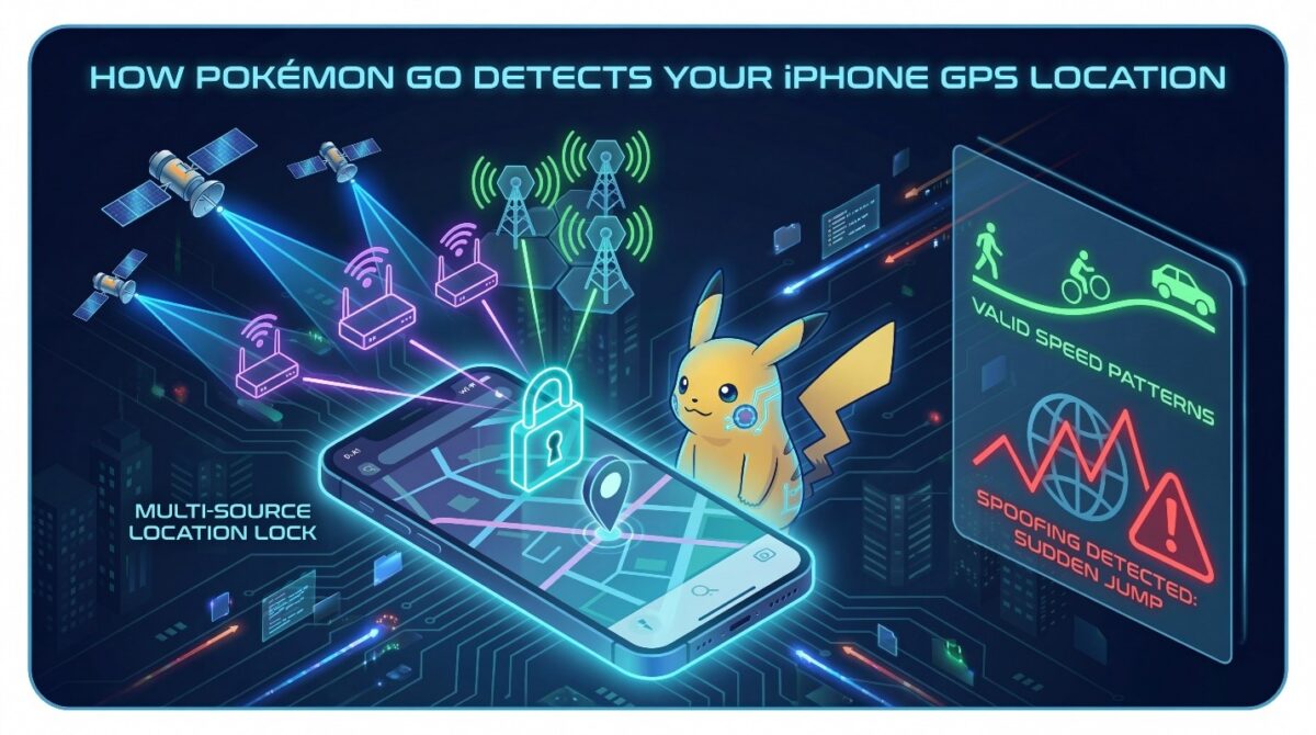 GPS satellites provide raw location coordinates. Pokémon Go checks these coordinates repeatedly during gameplay. If your iPhone moves faster than human limits, the system records the anomaly. Repeated anomalies increase account risk.