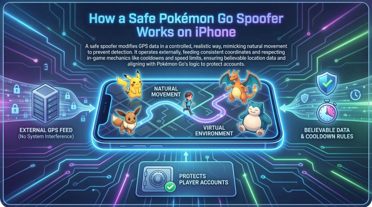 A safe Pokémon Go spoofer for iOS works by modifying GPS data in a controlled and realistic way. Instead of forcing fake signals abruptly, it creates a virtual environment that mimics natural movement. This approach helps prevent detection and protects player accounts.